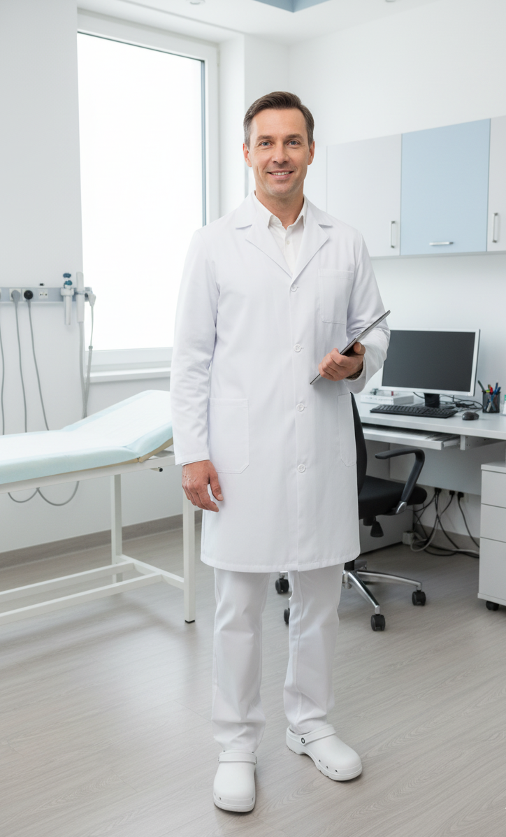 Početna / Medicinski program / Uniforme / Mantil muški Mantil muški Kategorije: Uniforme Opis Ravnog kroja, špic rever kragna, dugi rukav, sa džepovima, veličine: 44-62 (na lageru), kopčanje: dugmad, više boja, materijal: keper 100% pamuk Slični proizvodi Uniforme Mantil Desa Uniforme Bluza Tara Uniforme Pantalone muške Uniforme Pantalone ženske 2