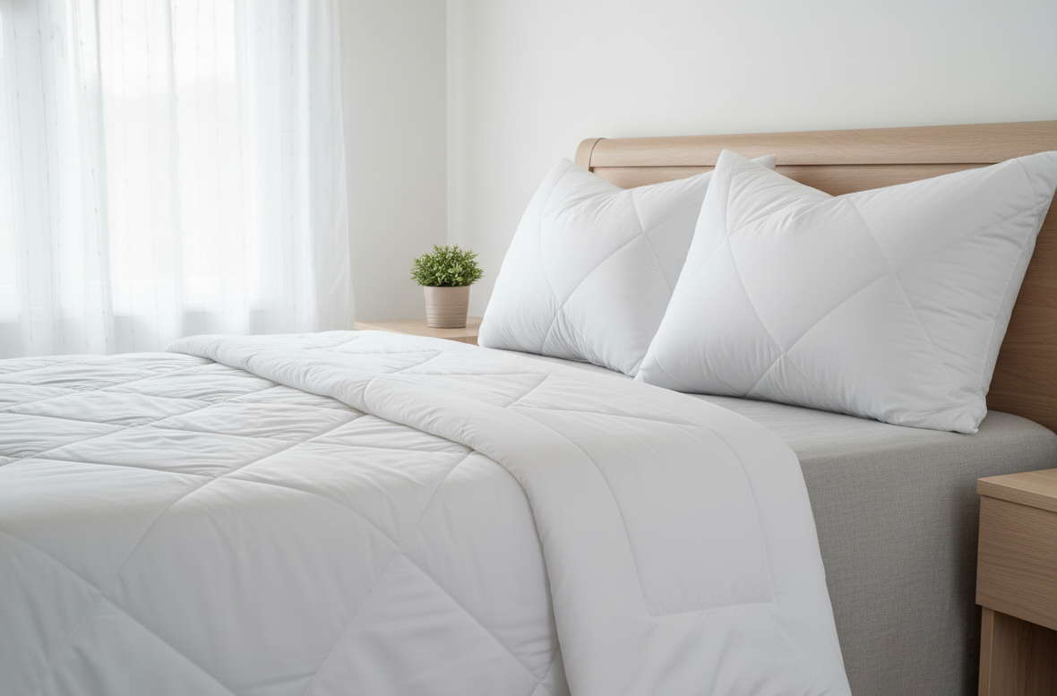 Jastučnica “Hotelinea”, materijal: 100% pamuk, platno (140gr/m2), krep (120gr/m2) ili damast (190gr/m2), modeli: kopčanje dugmad ili na preklop, sa karnerom ili bez, dimenzije: 50×70, 60×80
