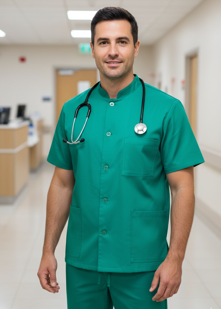 Početna / Medicinski program / Uniforme / Bluza Zdravko Bluza Zdravko Kategorije: Uniforme Opis Ravnog kroja, ruska kragna, dugi rukav, sa džepovima, veličine: 40-62 (na lageru), kopčanje: dugmad, više boja, materijal: keper 100% pamuk Slični proizvodi Uniforme Hirurški mantil plavi Uniforme Mantil muški Uniforme Pantalone muške Uniforme Bluza Tara